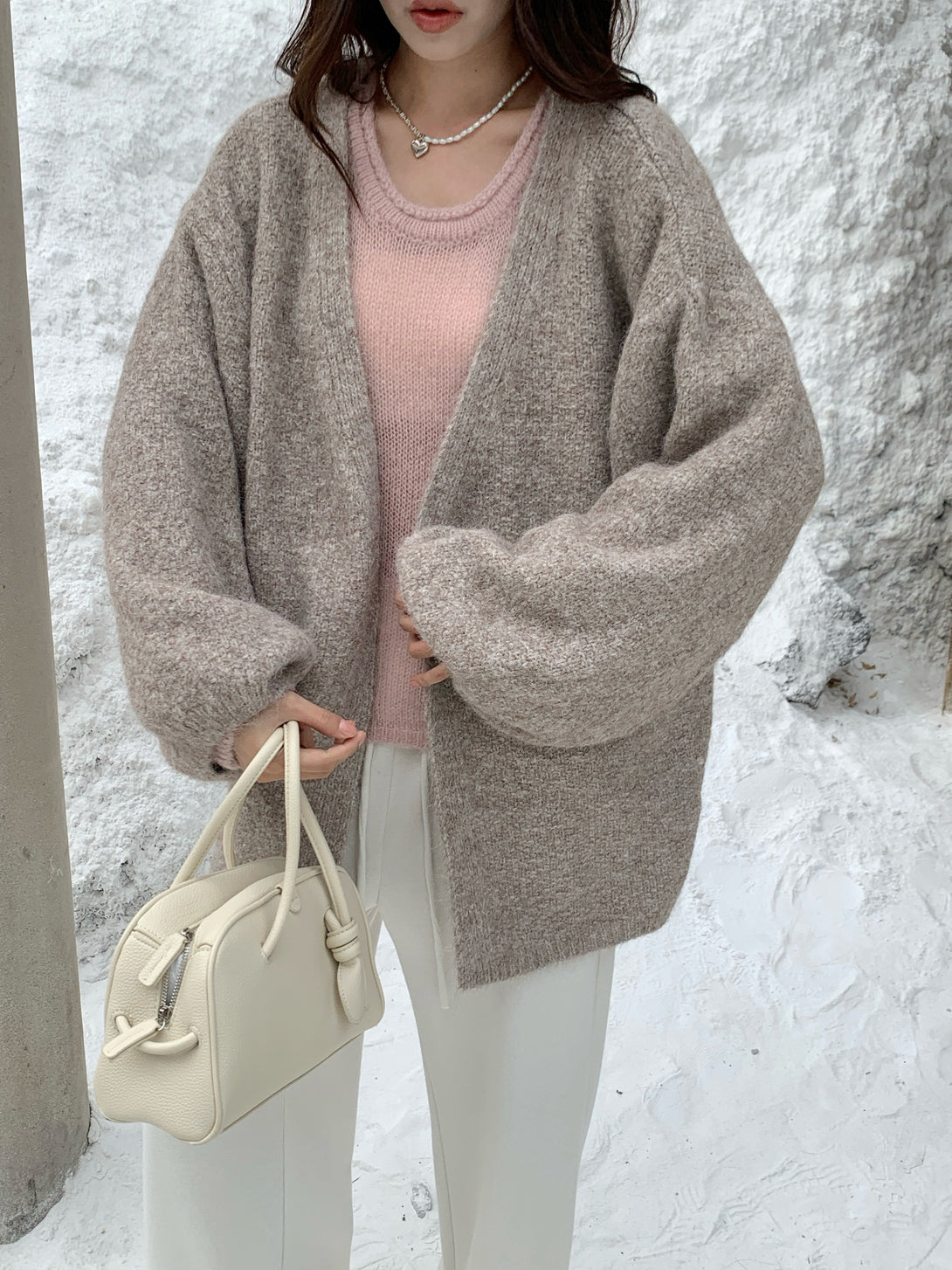 云茸 / Lantern-Sleeve Knit Cardigan