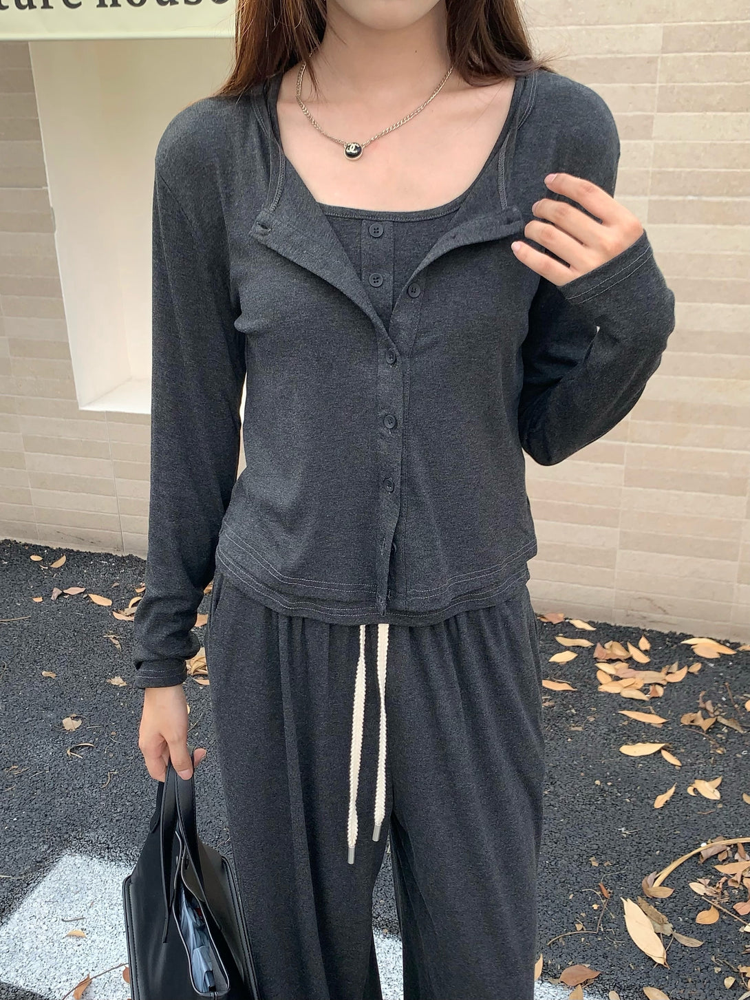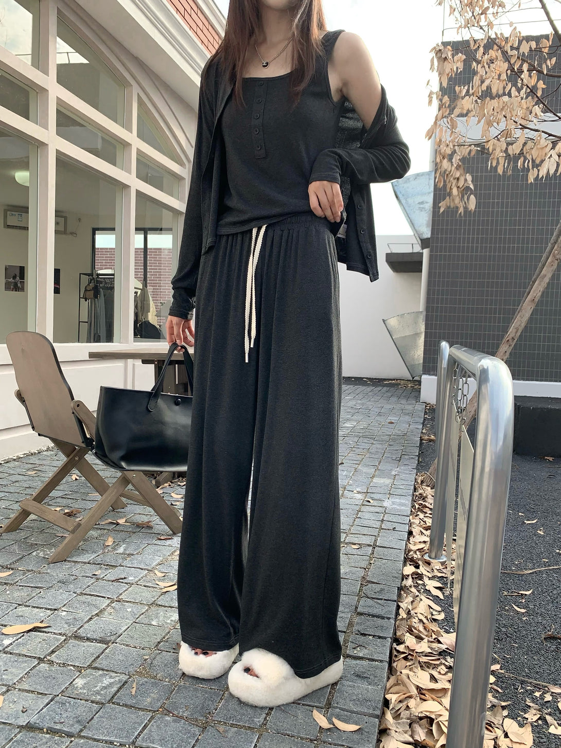 This dark grey set is such an easy outfit! Just throw it on and you instantly look put-together. The soft fabric feels so comfy, and the wide legs sway when you walk—love that! Effortless and a little cool—just the way I like it!