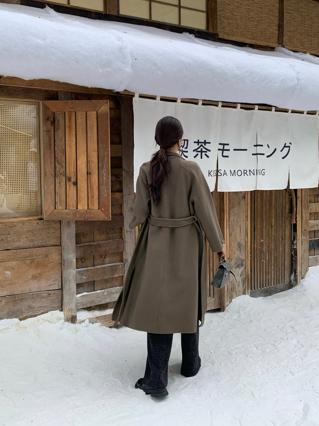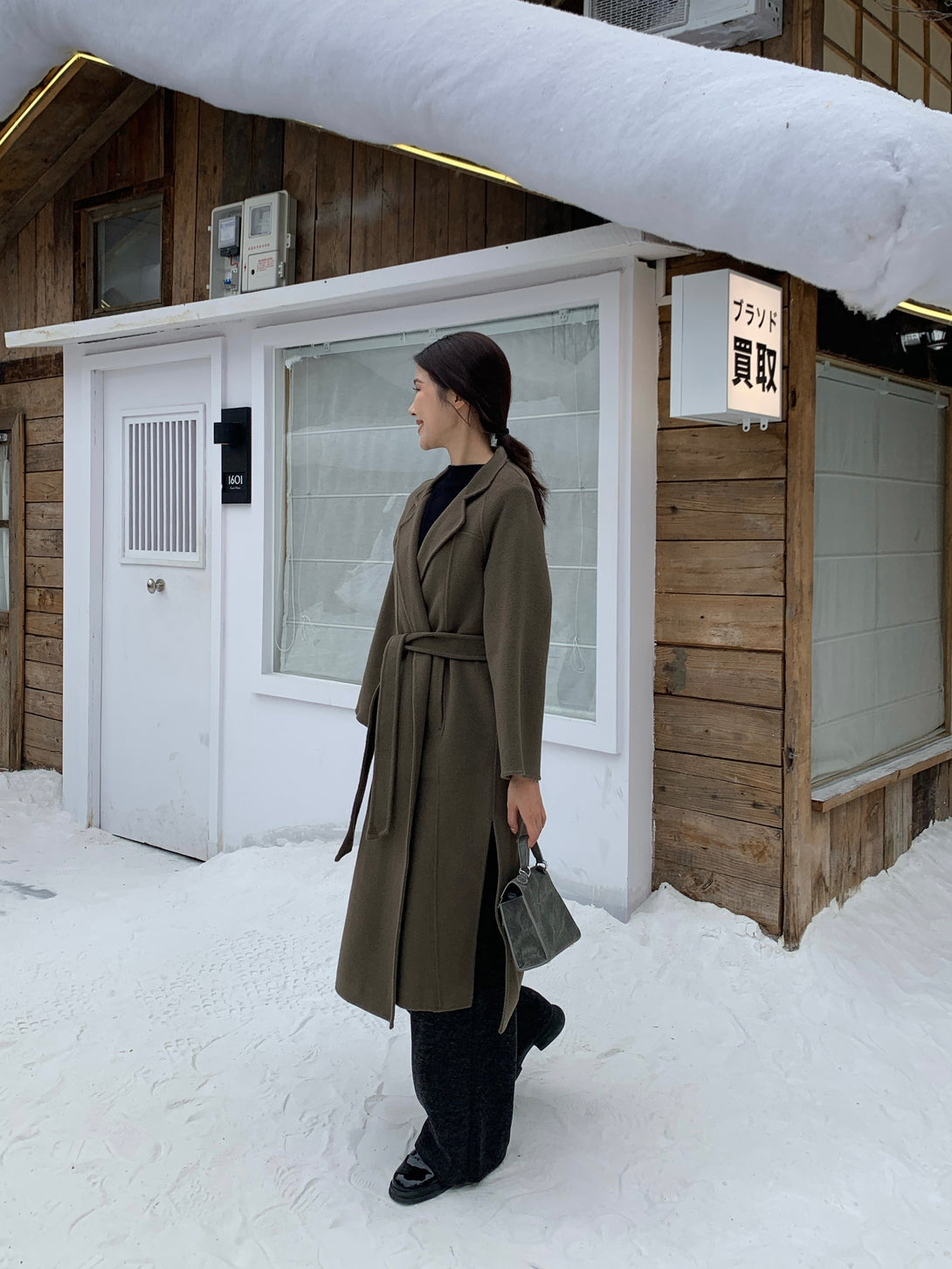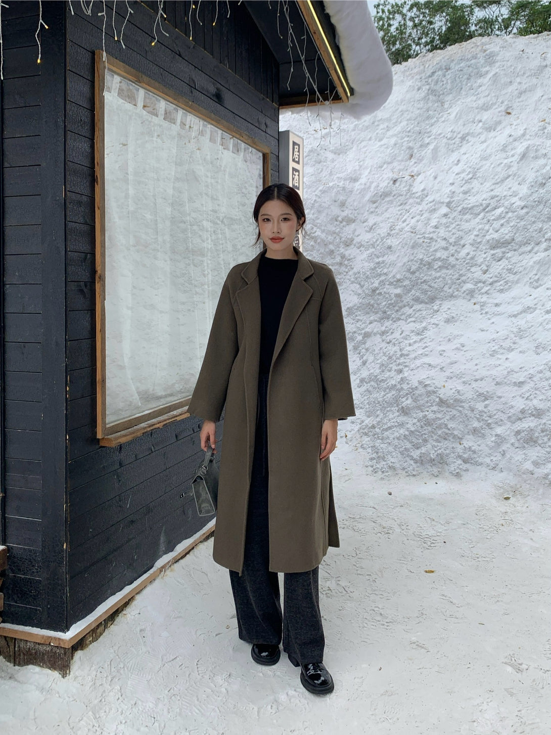 这件深咖色系的双面羊绒大衣气质满满~挺括的剪裁搭配系带设计,既优雅又有力量感;走起路来衣摆轻轻摆动,简约中透着高级。穿上它,就像化身冬日里的酷感女主!