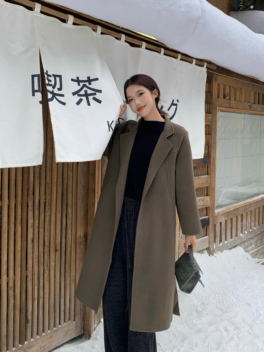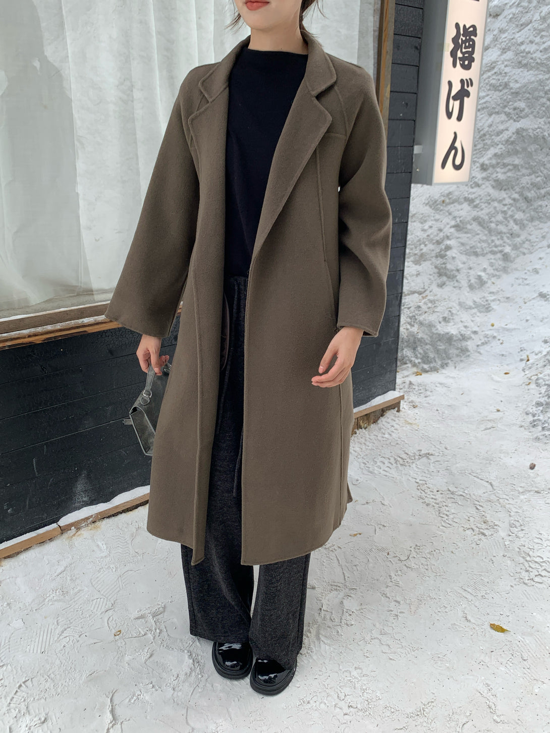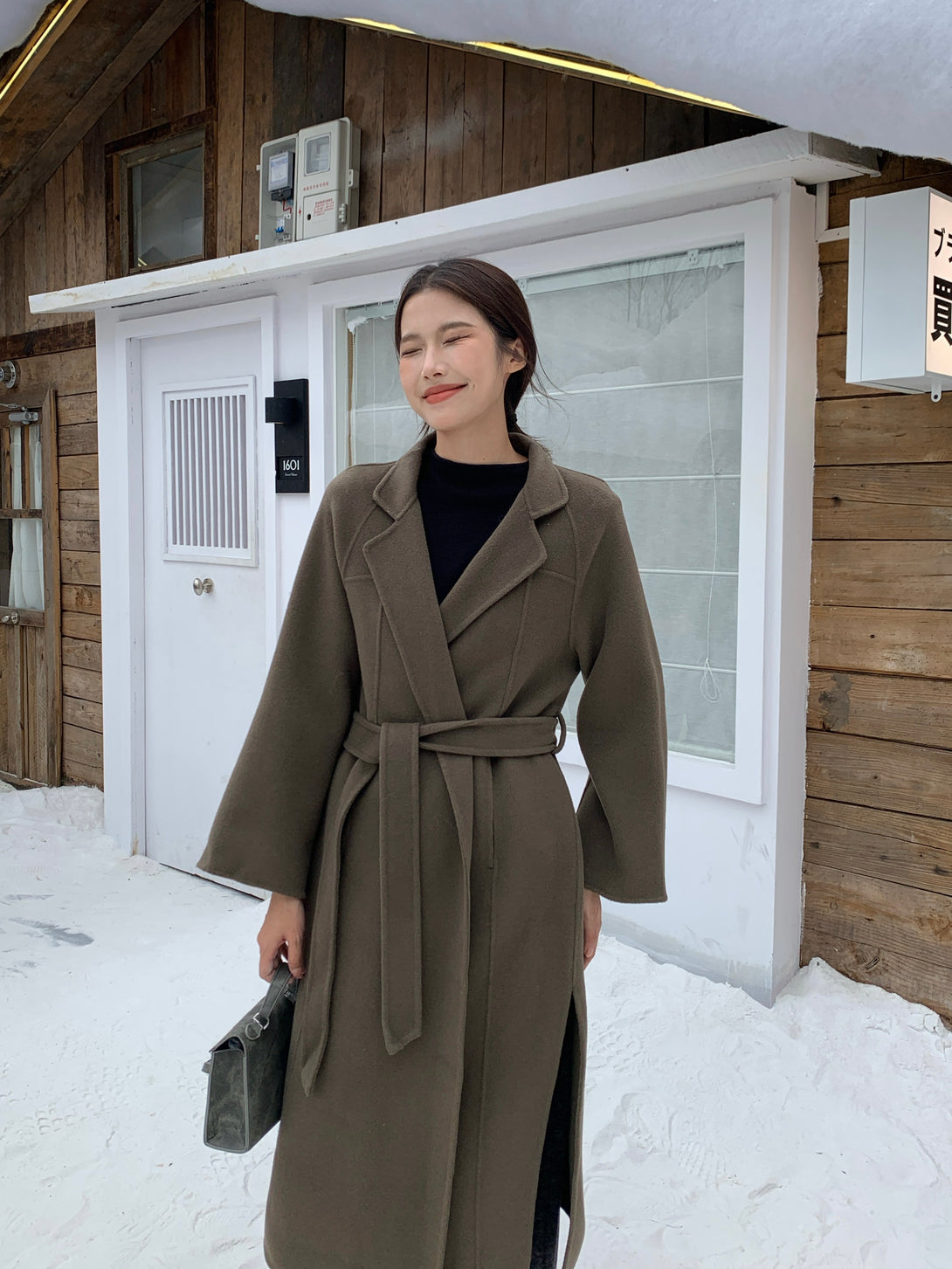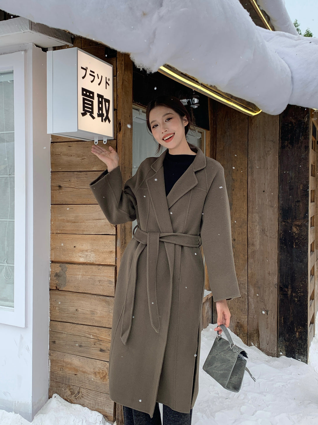 这件深咖色系的双面羊绒大衣气质满满~挺括的剪裁搭配系带设计,既优雅又有力量感;走起路来衣摆轻轻摆动,简约中透着高级。穿上它,就像化身冬日里的酷感女主!