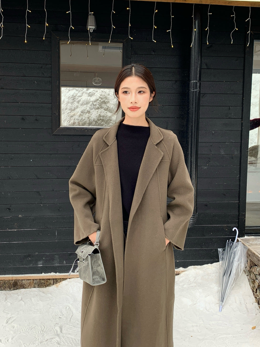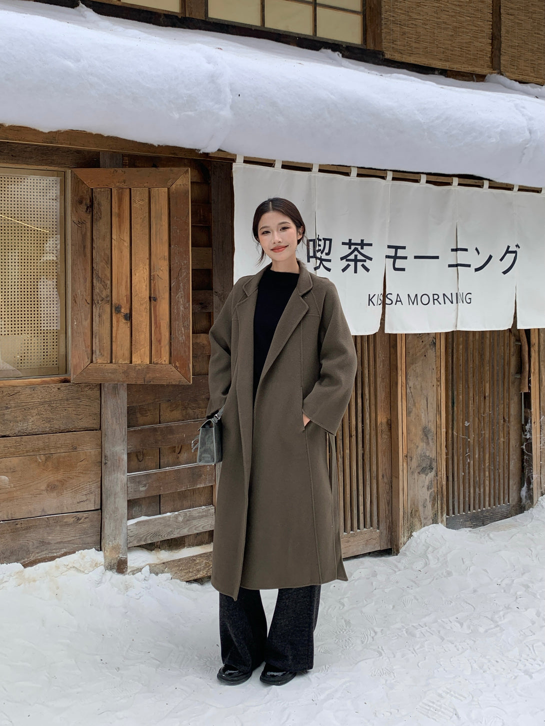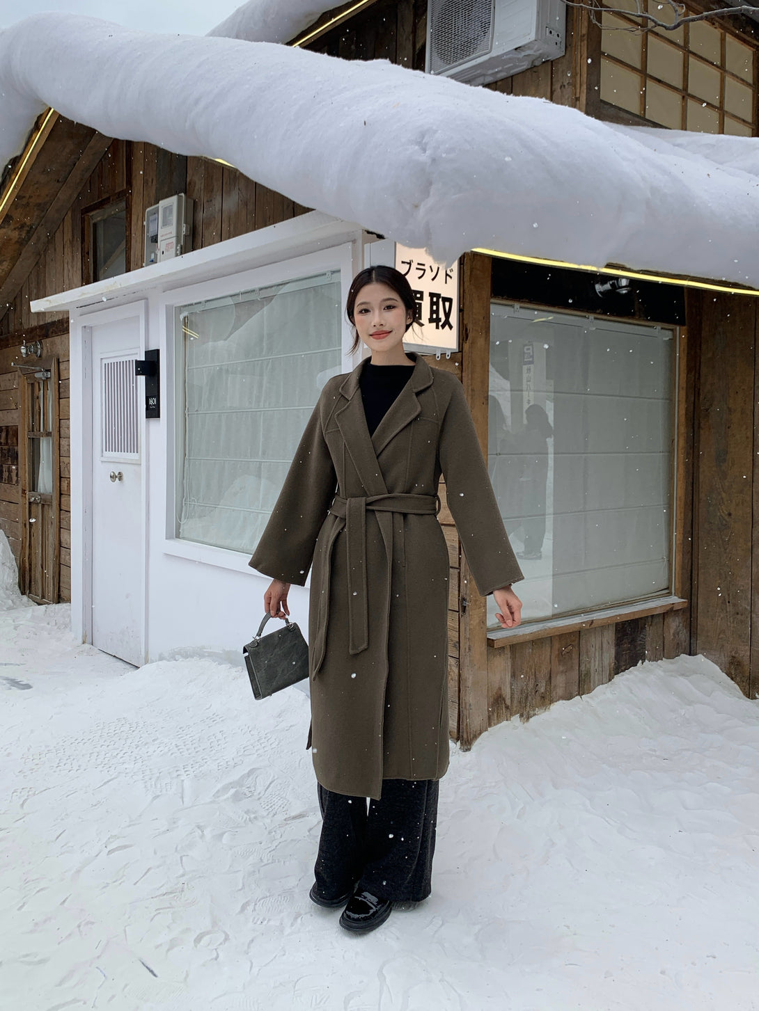 This dark coffee double-Faced cashmere coat exudes effortless elegance~ The structured silhouette and belted waist strike the perfect balance between grace and strength. As you walk, the hem sways softly, adding a touch of sophistication. Slip it on, and you’ll feel like the cool heroine of a winter film!