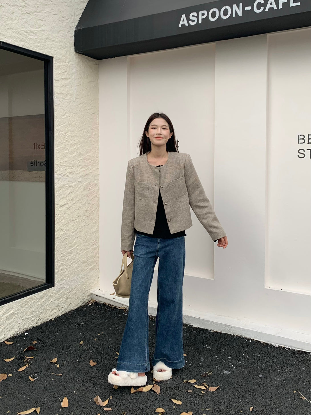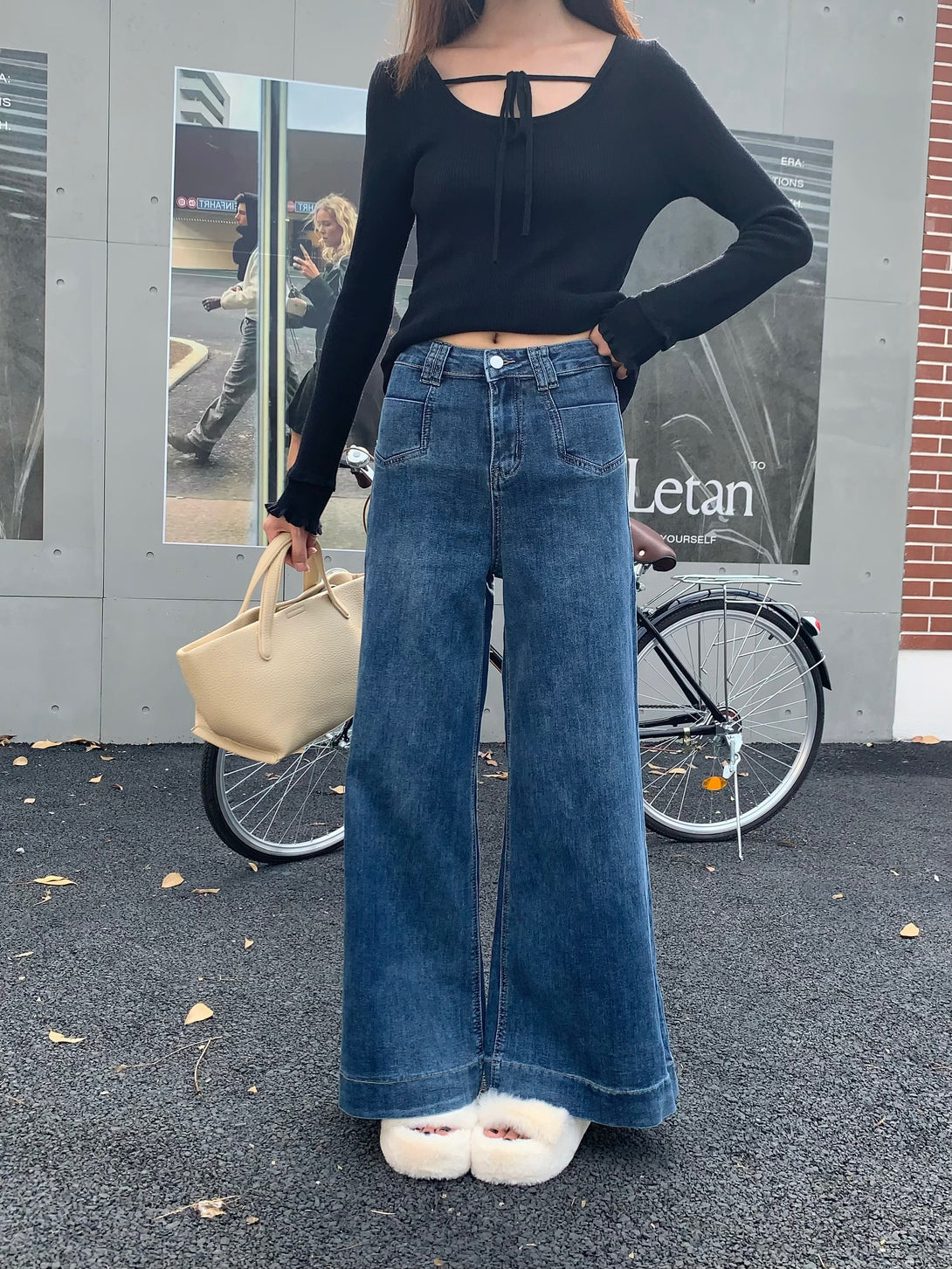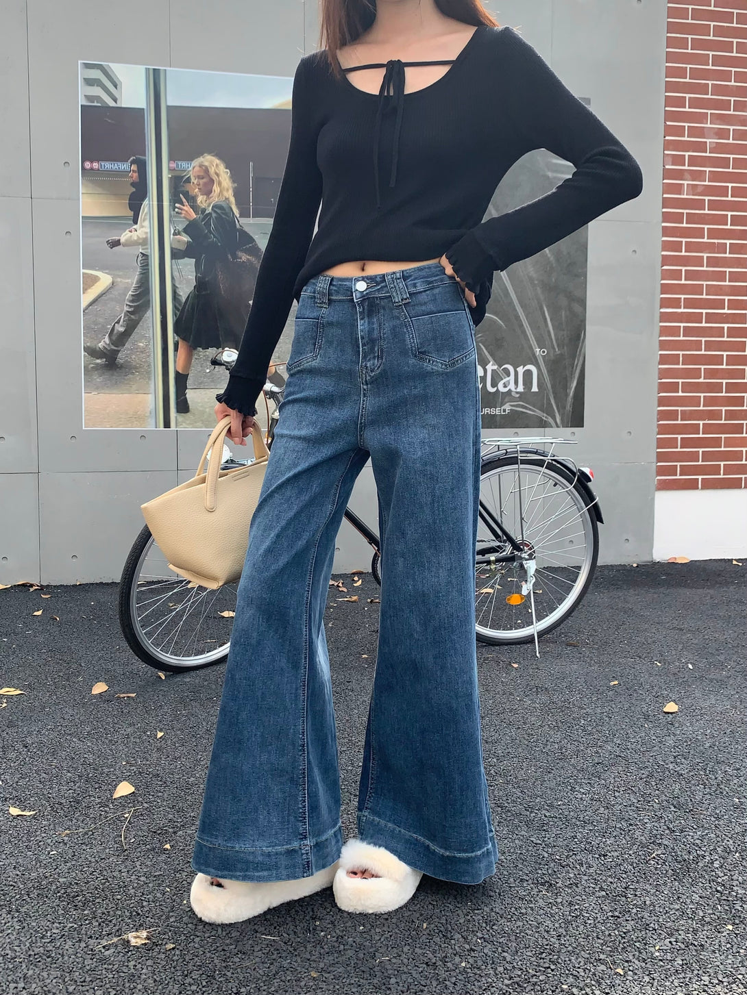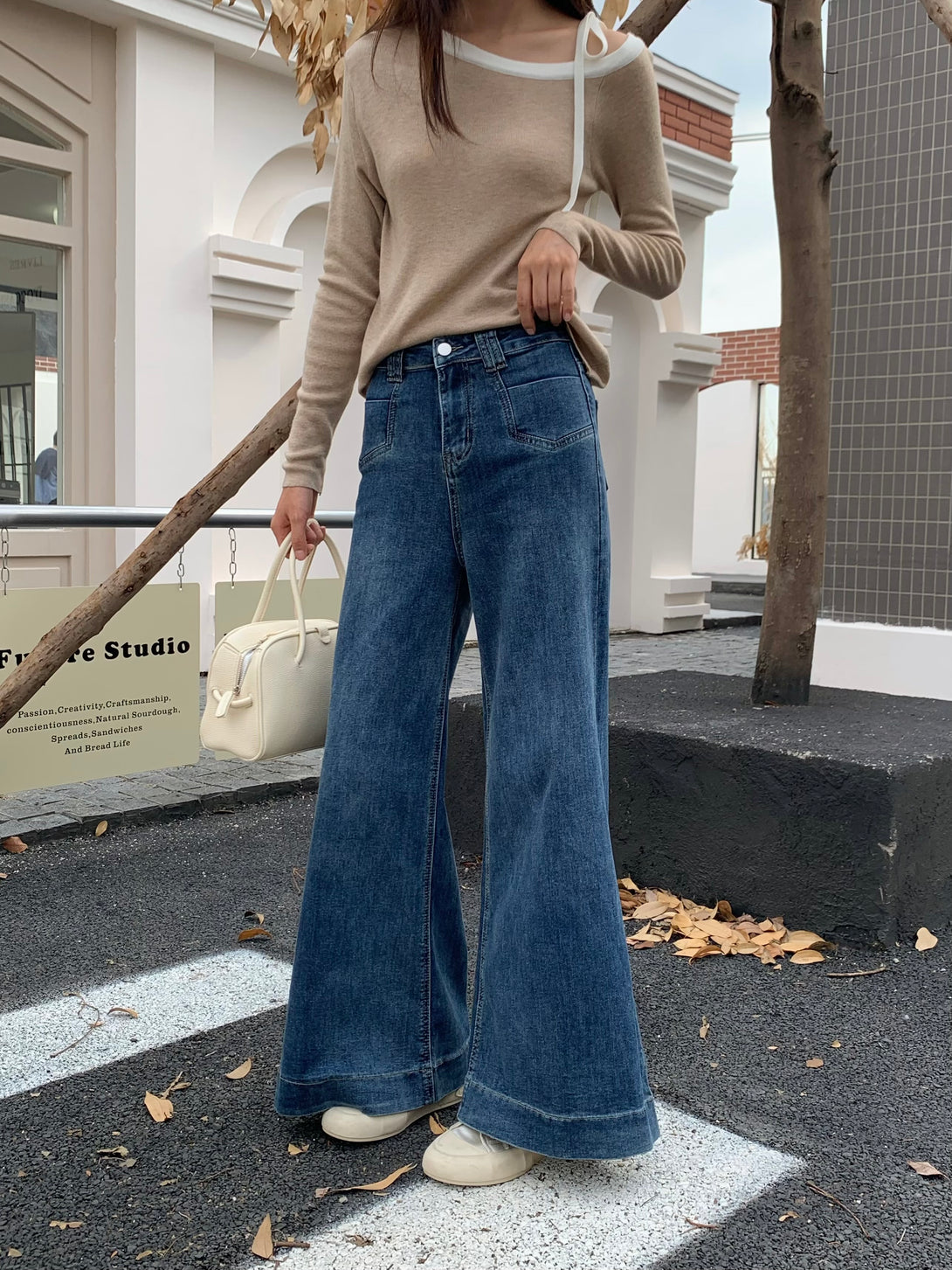 These jeans have such a vibe! The high-waisted cut elongates the legs, and the slight flare at the bottom adds a touch of retro without feeling dated. The denim is structured yet comfy—perfect for that effortlessly cool look with just a shirt thrown on.