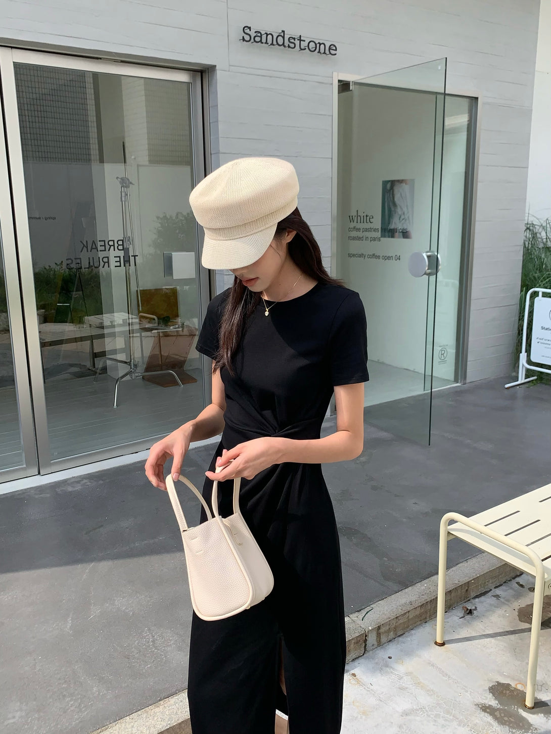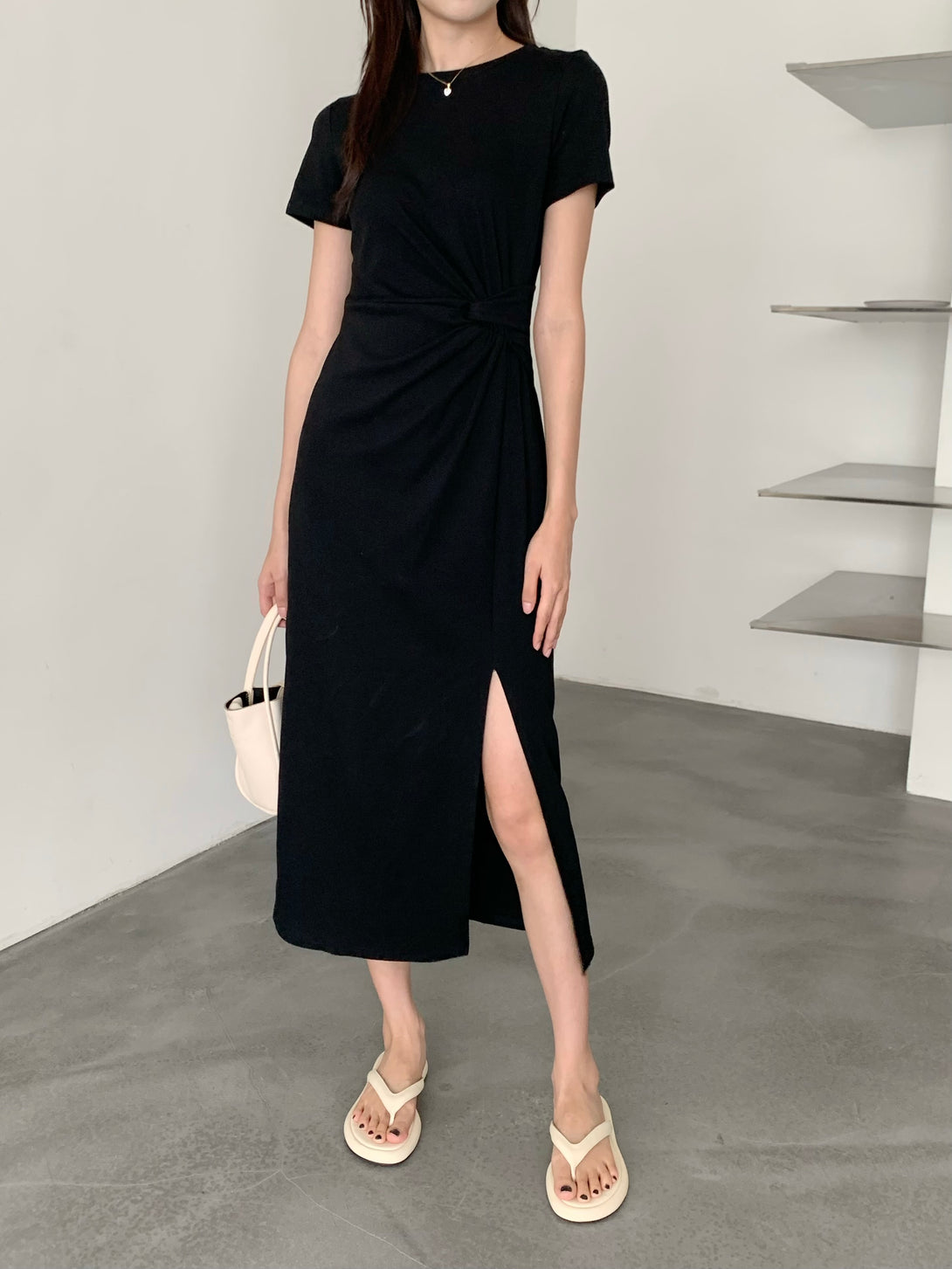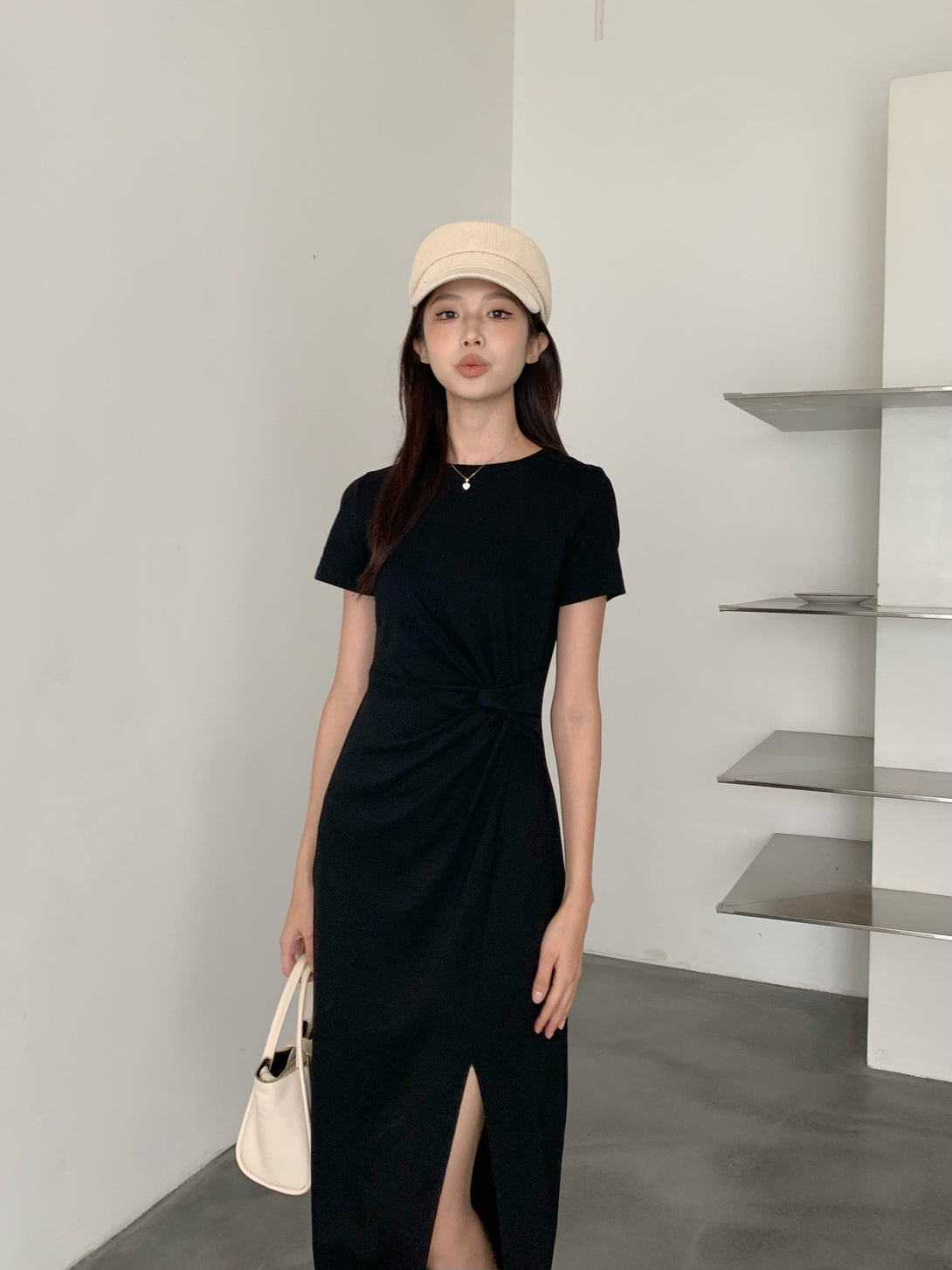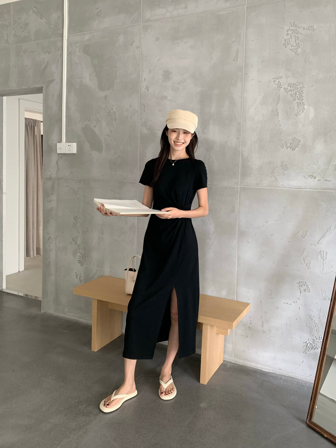 This subtly chic black dress is full of clever design details! The pleated waist creates a slimming effect, and the side slit adds just the right amount of movement—effortlessly graceful with every step. It may look minimalist, but every element is thoughtfully crafted.