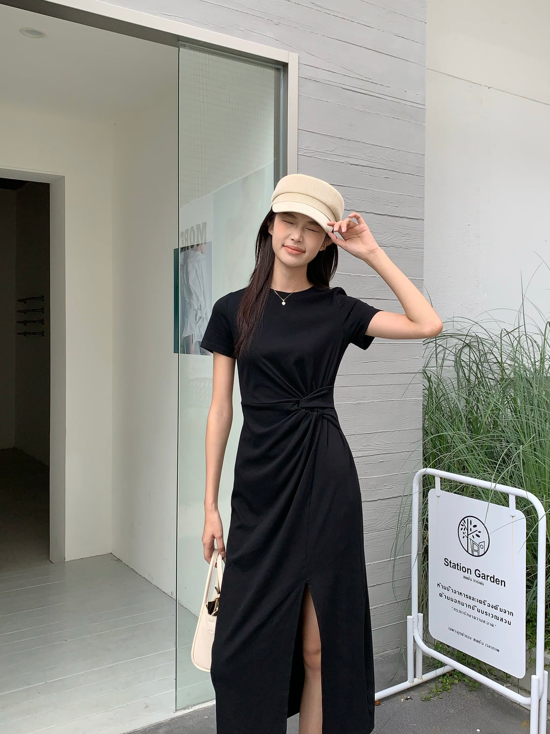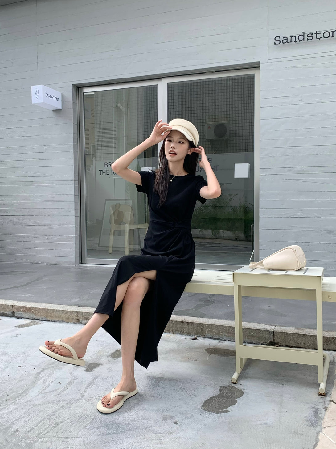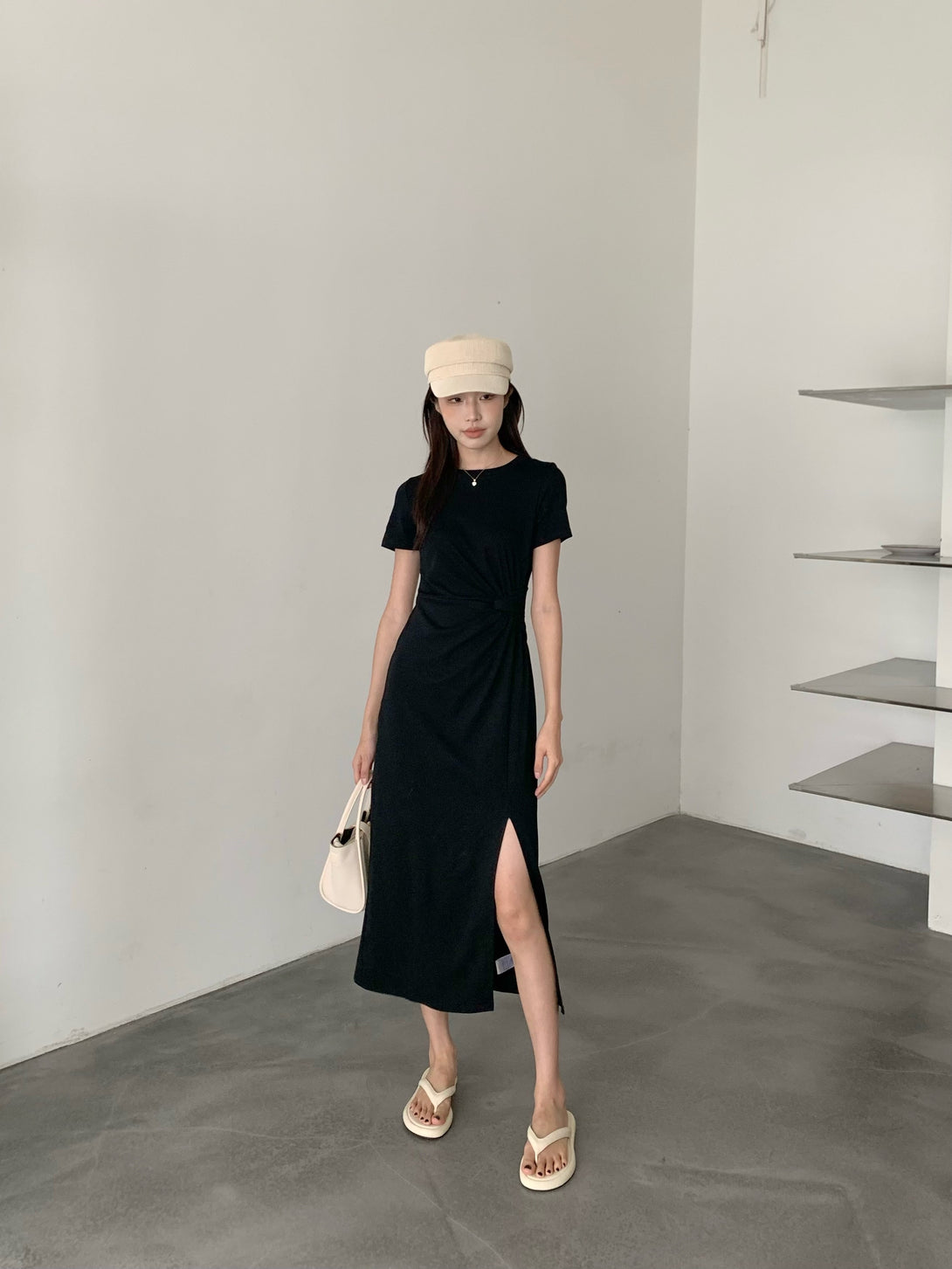 This subtly chic black dress is full of clever design details! The pleated waist creates a slimming effect, and the side slit adds just the right amount of movement—effortlessly graceful with every step. It may look minimalist, but every element is thoughtfully crafted.