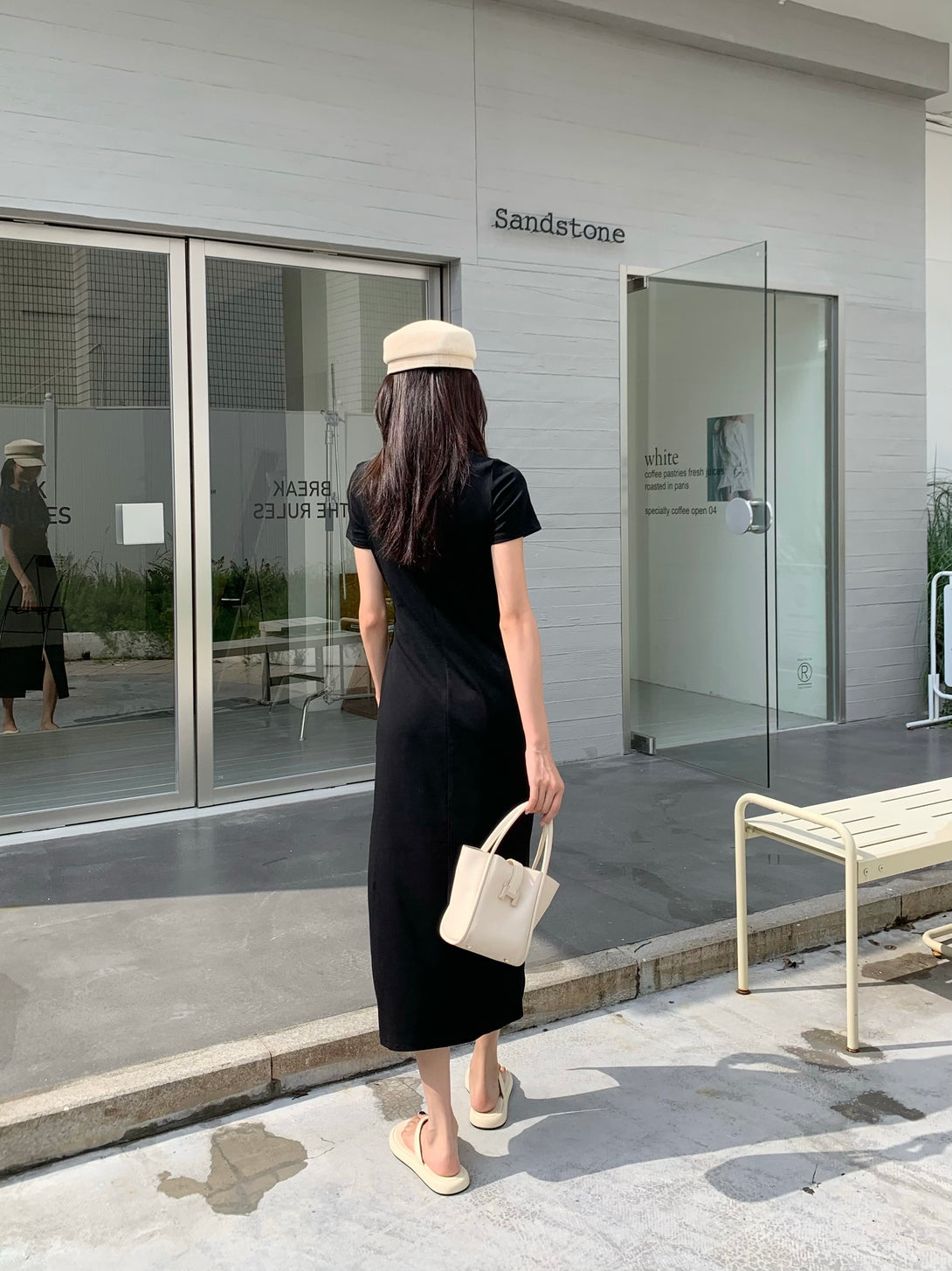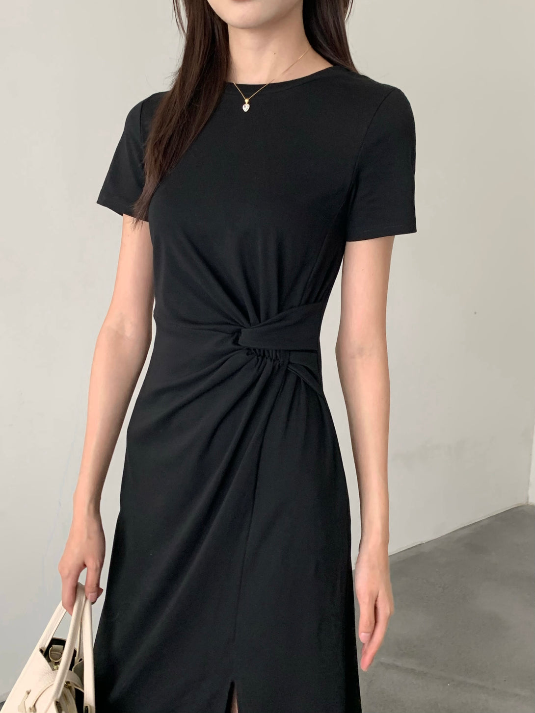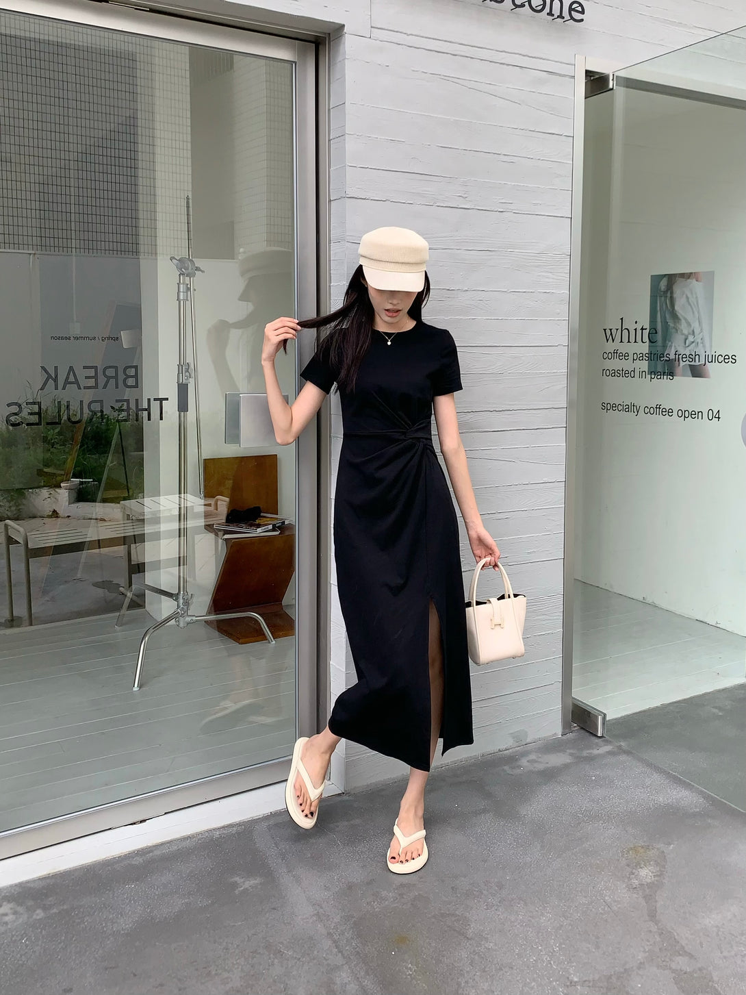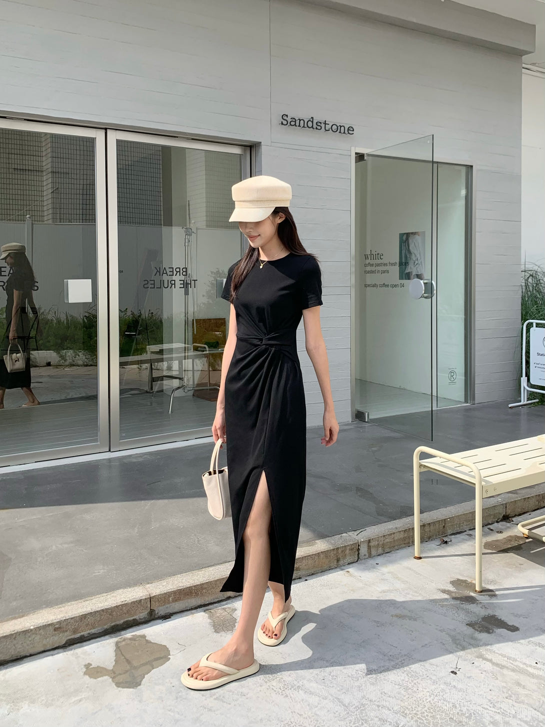 This subtly chic black dress is full of clever design details! The pleated waist creates a slimming effect, and the side slit adds just the right amount of movement—effortlessly graceful with every step. It may look minimalist, but every element is thoughtfully crafted.